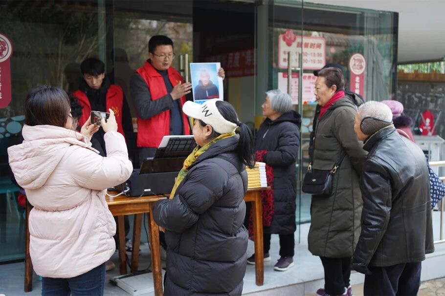 活动当天,社区老人们或由家人陪同、或互相结伴,早早来到活动现场等候。在志愿者的引导下,老人们有序排队,依次完成登记、整理妆容、进入拍摄环节。