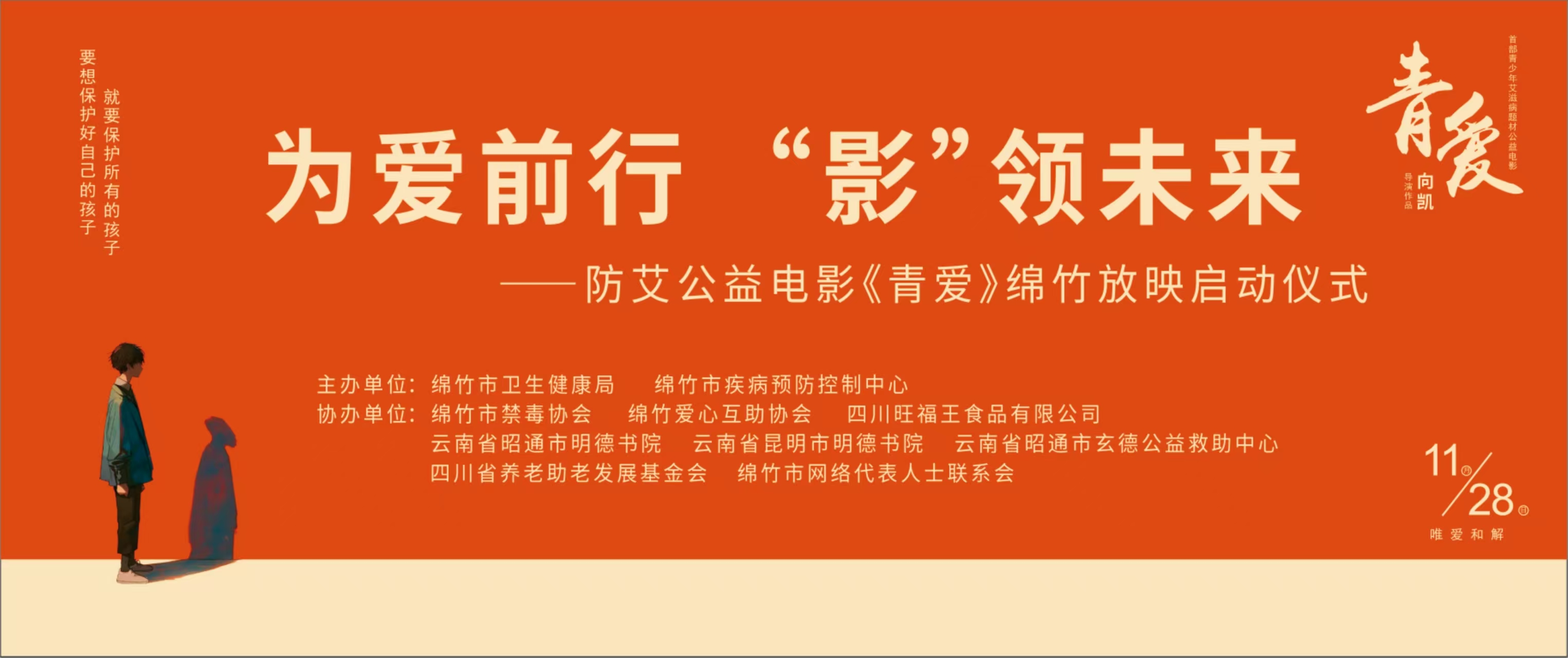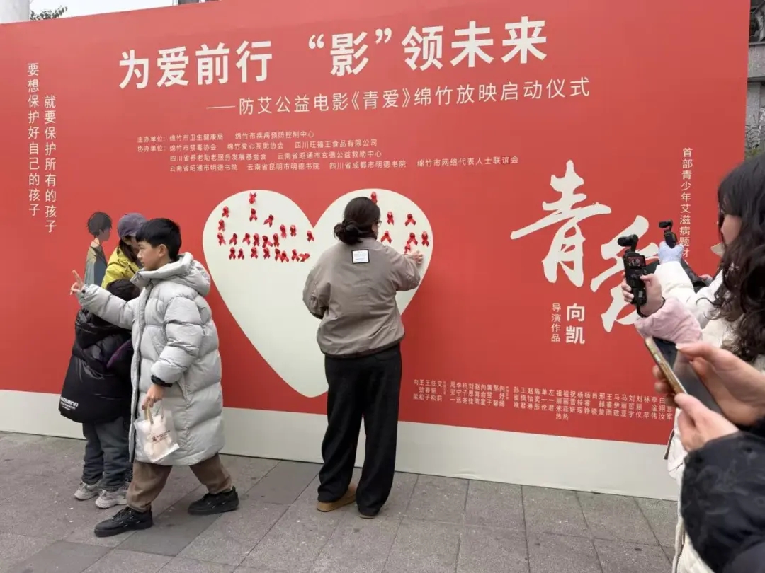 活动现场同步举行了防艾公益电影《青爱》的绵竹放映启动仪式。这部以青少年艾滋病防治为主题的公益电影,通过真实细腻的故事传递 “唯爱和解” 的防艾理念,启动仪式上,主办方与协办单位代表共同为电影放映揭幕,宣布后续将在绵竹市各社区、学校、养老机构开展巡回放映。四川省养老助老服务发展基金会相关负责人表示:“老年群体是禁毒防艾工作中容易被忽视的重点人群,我们希望通过电影这种大众喜闻乐见的形式,让防艾理念走进养老机构,同时结合禁毒宣传,为老年人构建更全面的健康防护网。”