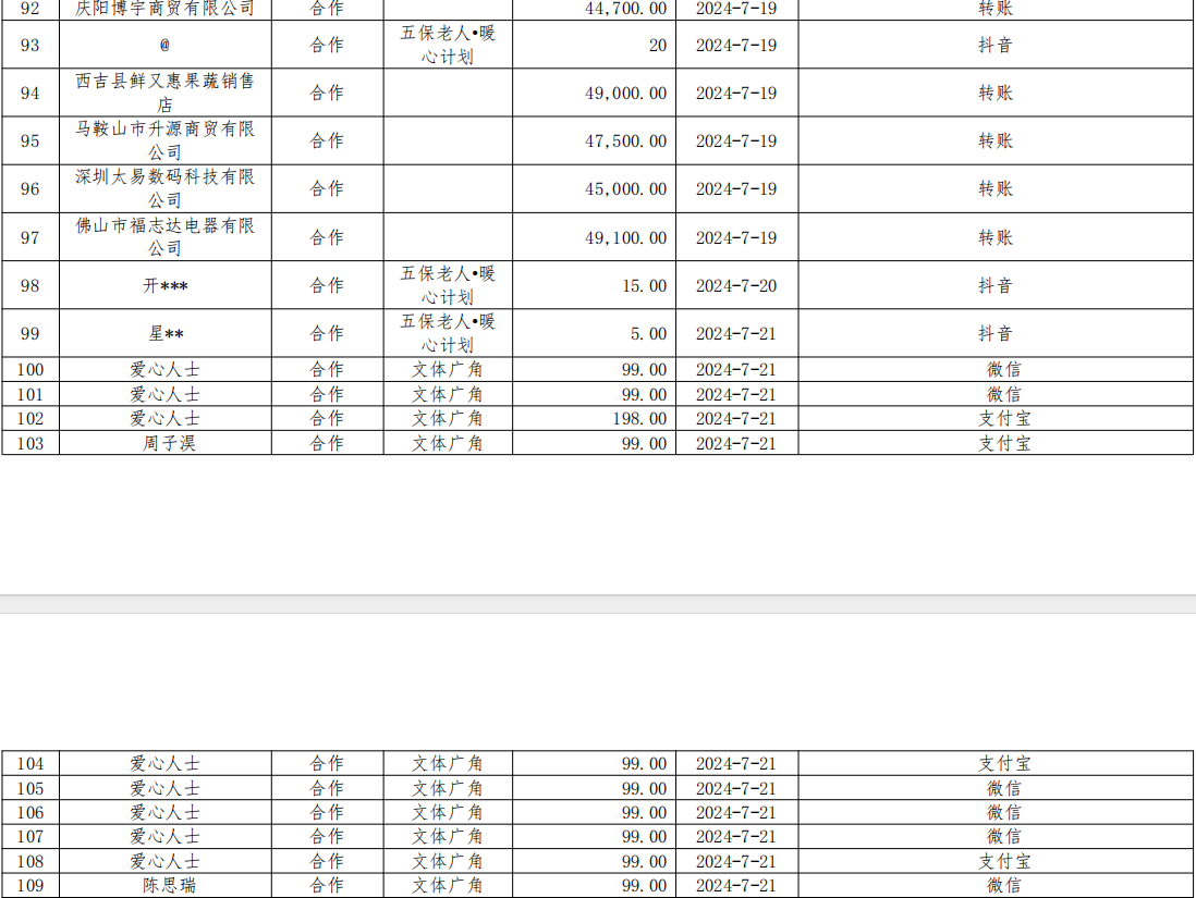 以上是基金会第三季度线上和线下接受捐赠明细