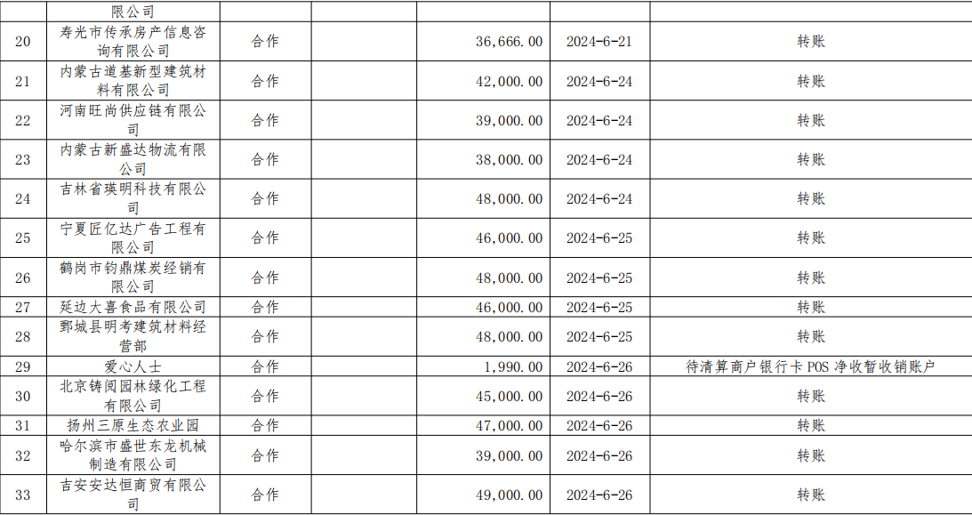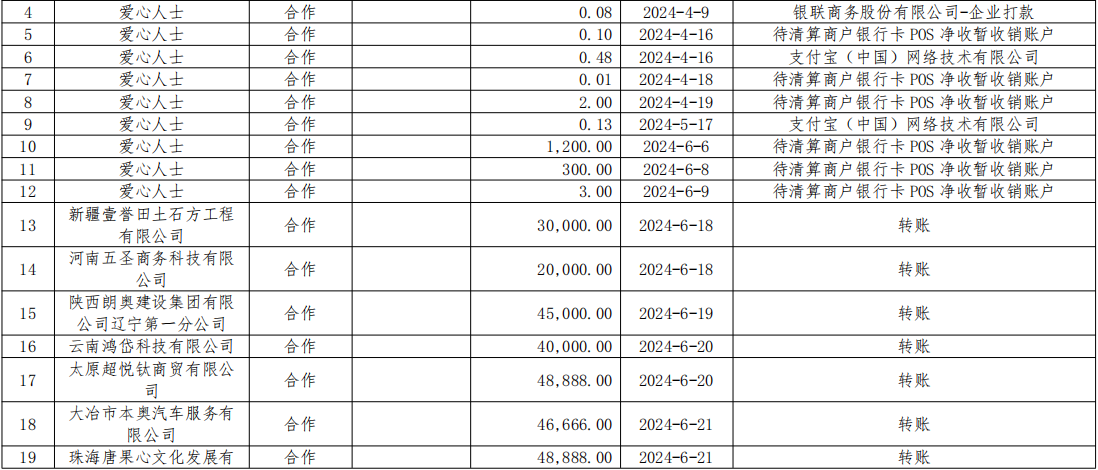 截图为本基金会第二季度线上和线下接受捐赠明细