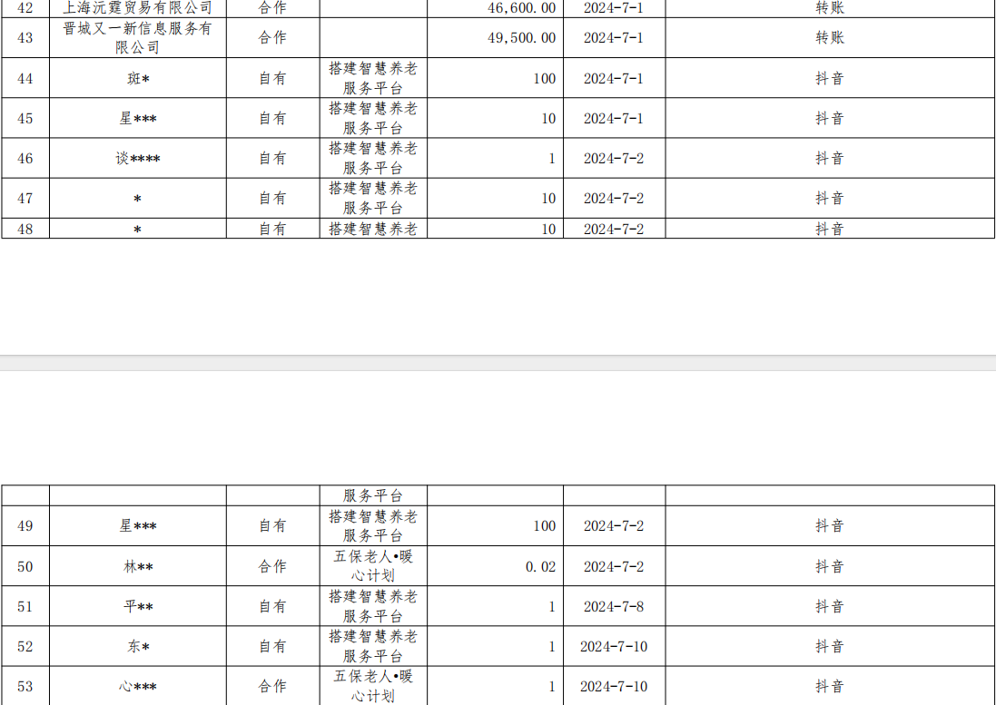 截图为本基金会第三季度线上和线下接受捐赠明细